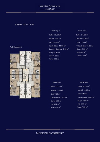 Yol Cephesi Yatak Odası 14.00 m² Yatak Odası 15.00 m²